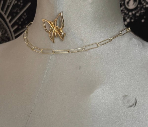 Collier en forme de trombone, couleur or, en acier inoxydable